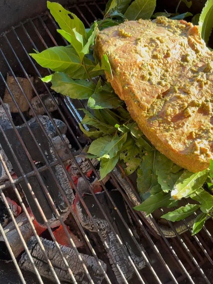 We grow our own fruit and vegetables in our garden, raise chickens for eggs, make our own ferments and condiments, and source other ingredients from local farmers and artisans.