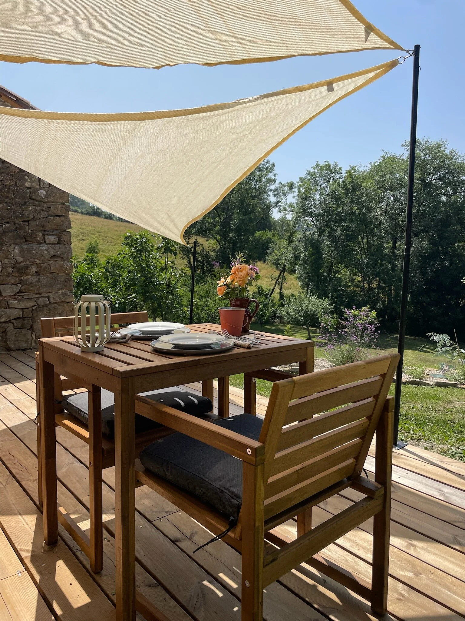 Our newest gîte, le Néflier has transformed this former bakery into a cosy, unique place to stay. The living space features a full equipped kitchen, small dining table and lounge area. Outside is a generous deck with dining table and lounge chairs. With a stylish shower room and kingsize bedroom it has everything you need for a relaxing and comfortable stay.