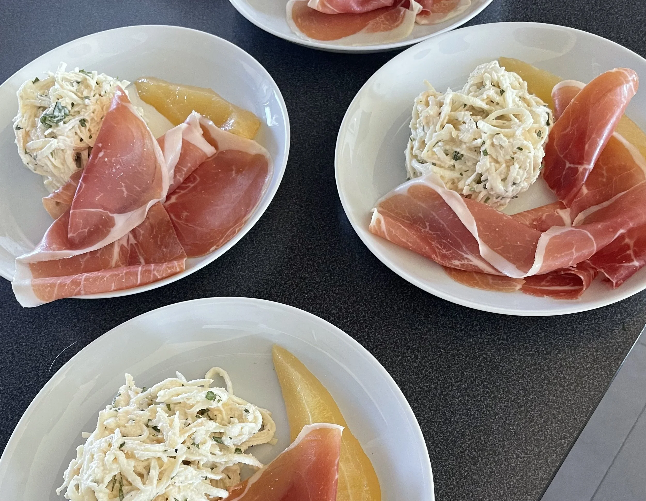 We can cater for up to 40 people for a formal dinner or lunch. This sample menu provides a sense of what’s on offer, but we can tailor this according to taste and budget. Get in touch for more details and a full quote.